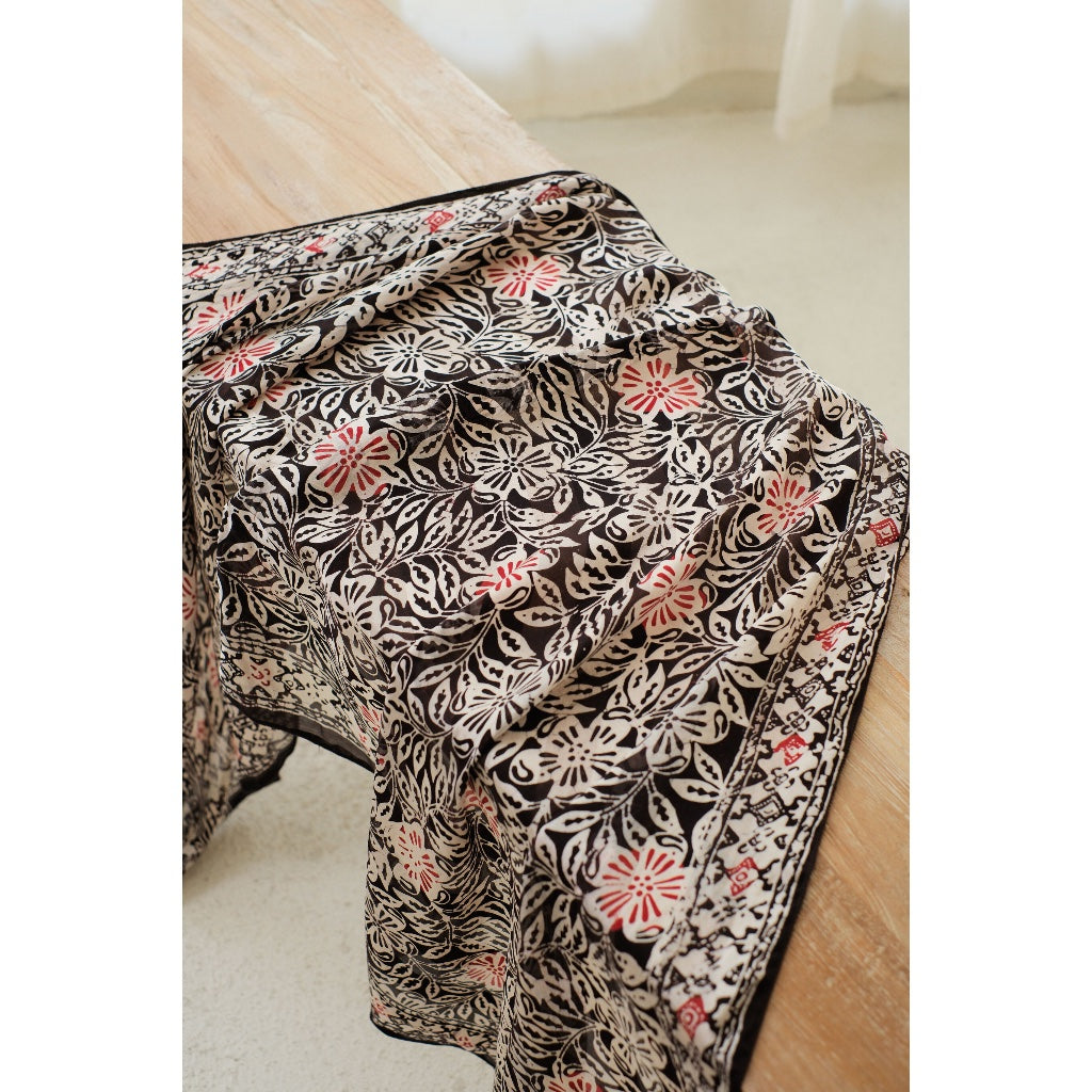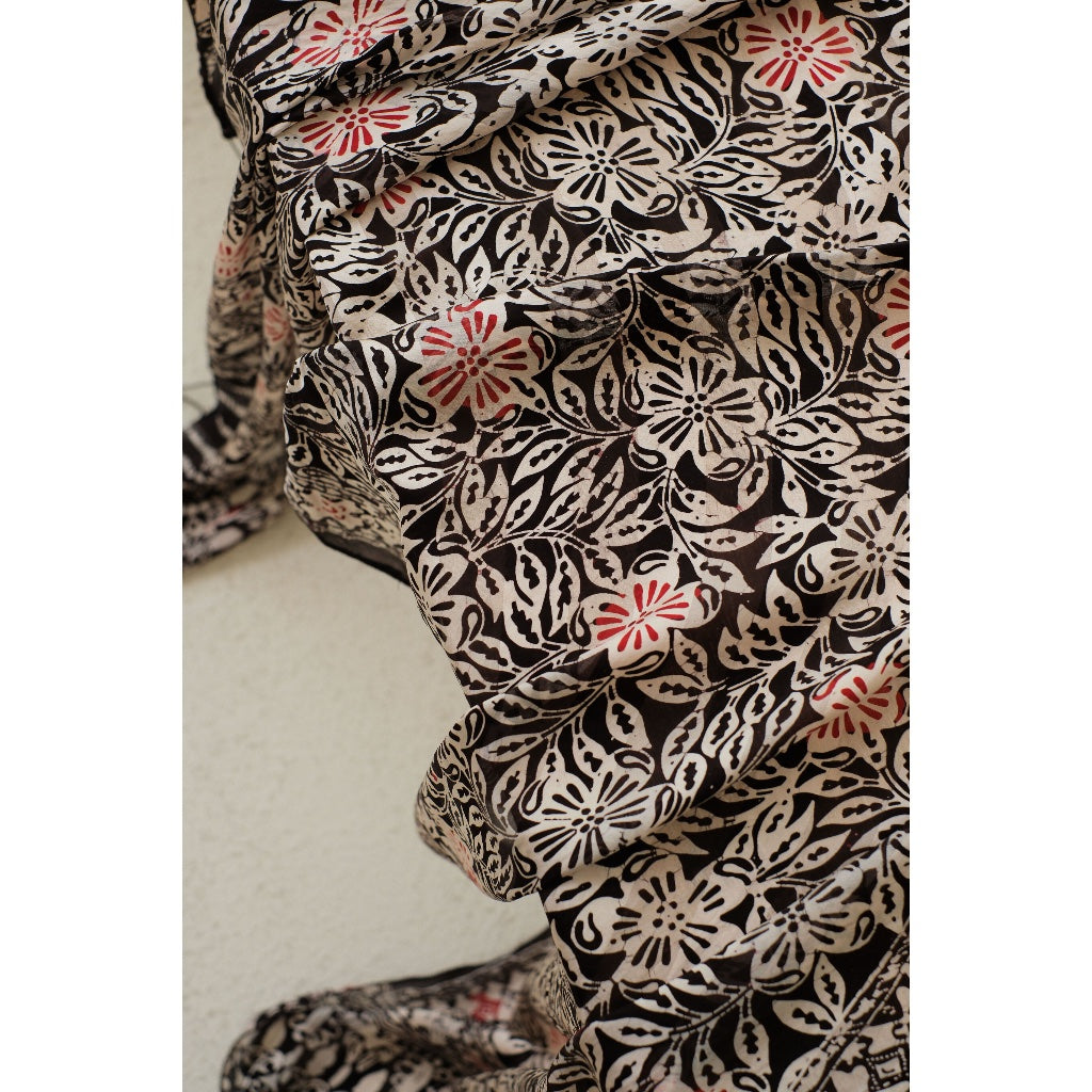 A perfect blend of traditional craftsmanship and contemporary style. Made from silk fabric, each scarf is hand-dyed and hand-stamped ensuring a unique and beautiful design. Wear it as a scarf, shawl, or wrap to add a touch of elegance to any outfit.