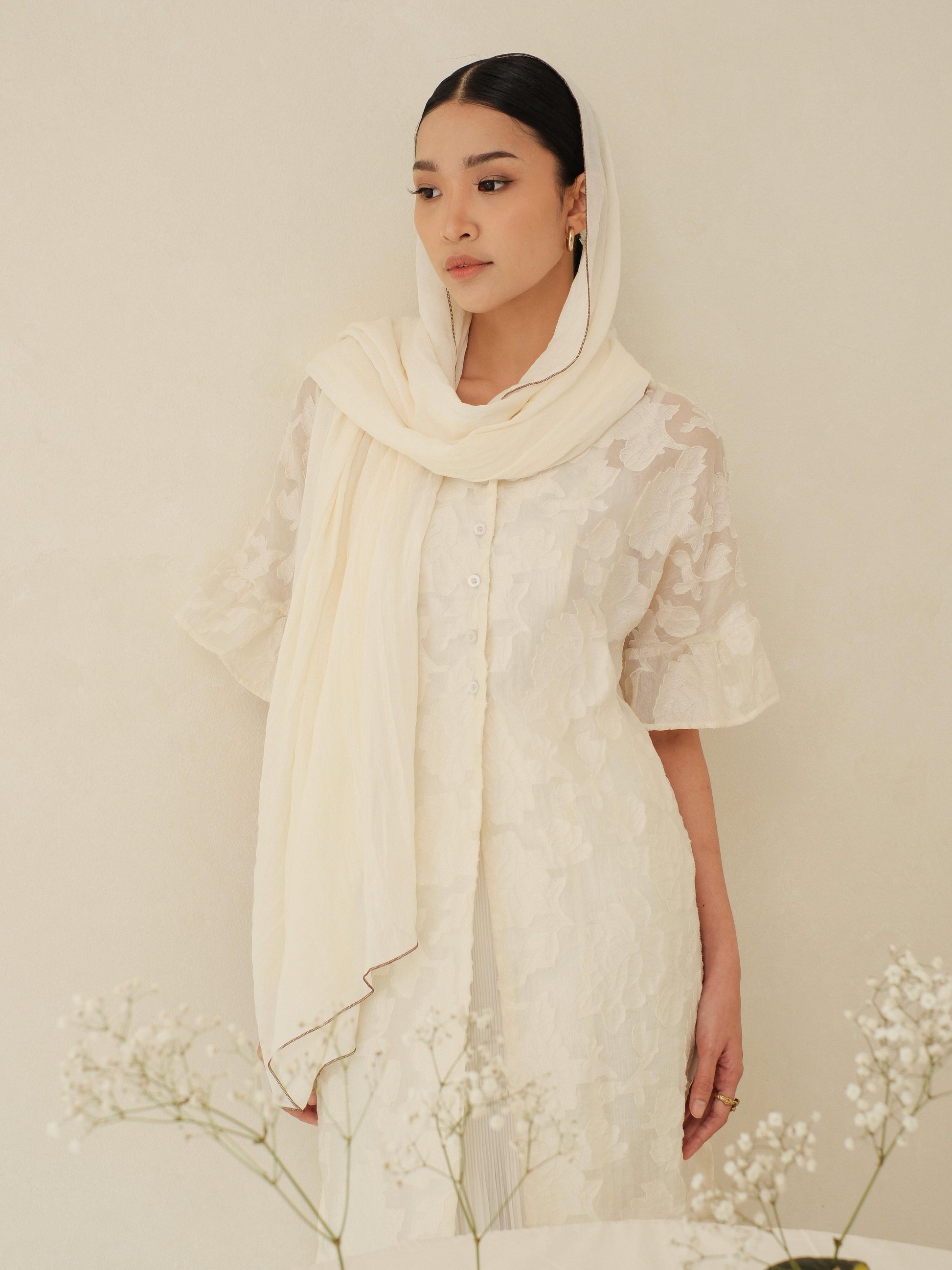 Noor in Cream Shawl - Selendang Batik