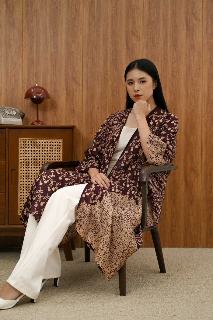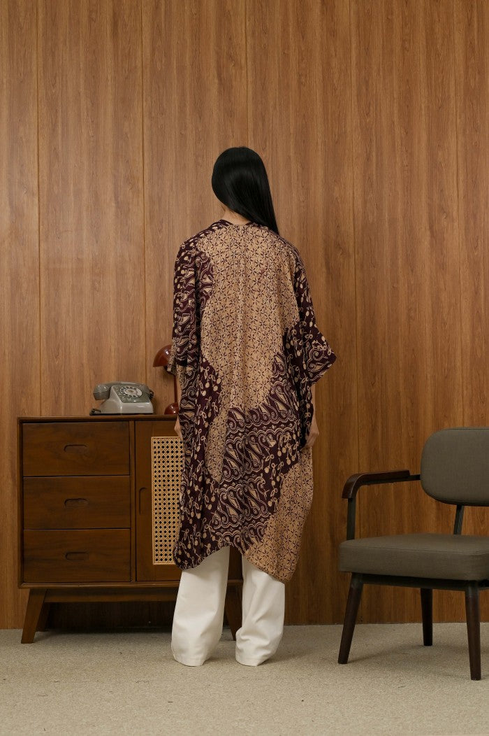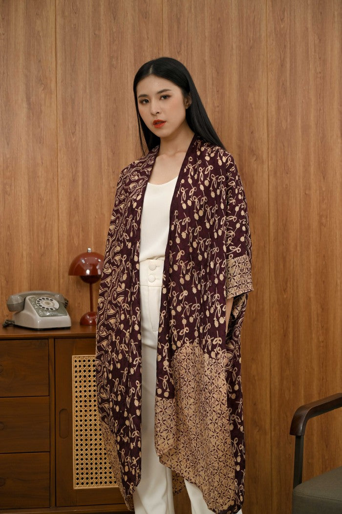 Embrace timeless sophistication with this flowy and versatile Batik outerwear, thoughtfully designed to complement all body types. Crafted from lightweight and breathable viscose, this piece drapes beautifully, ensuring both comfort and effortless style.