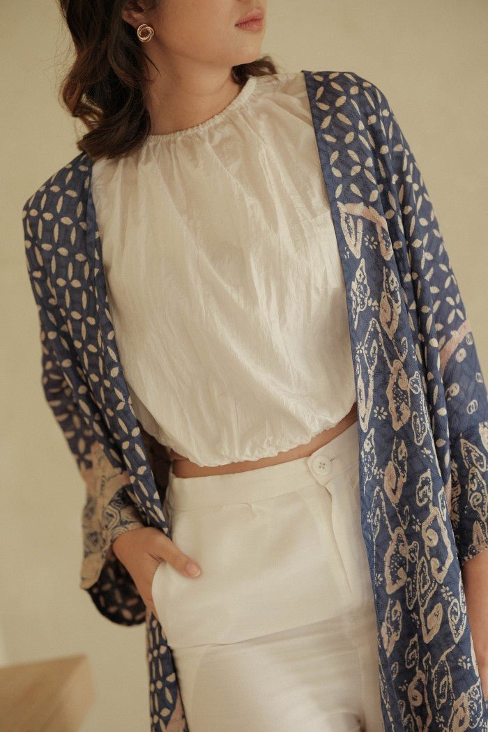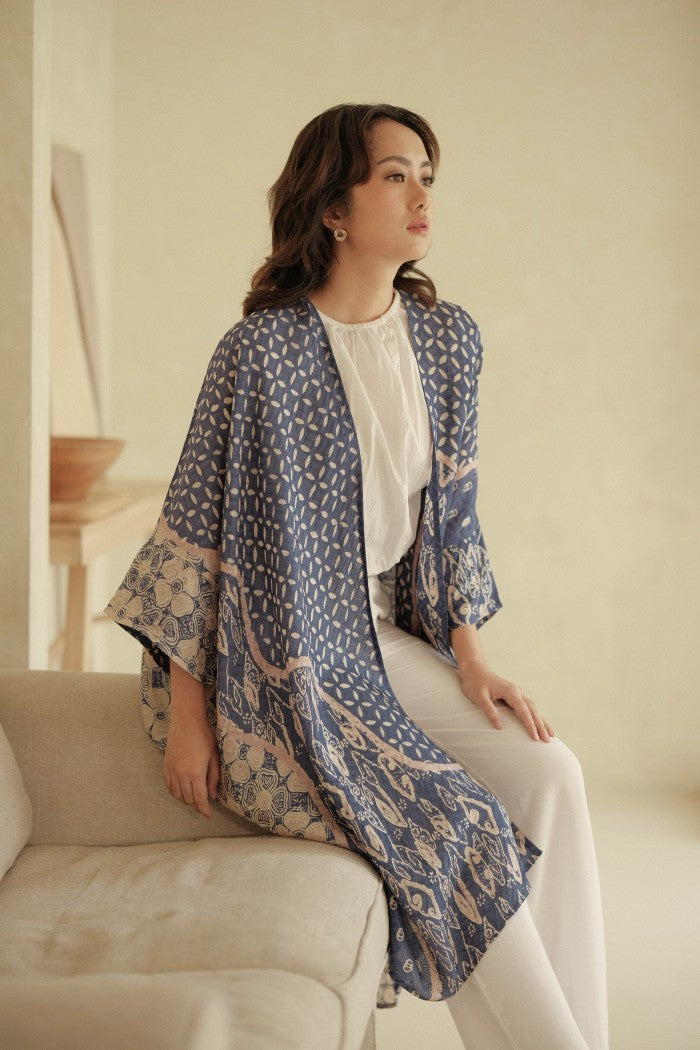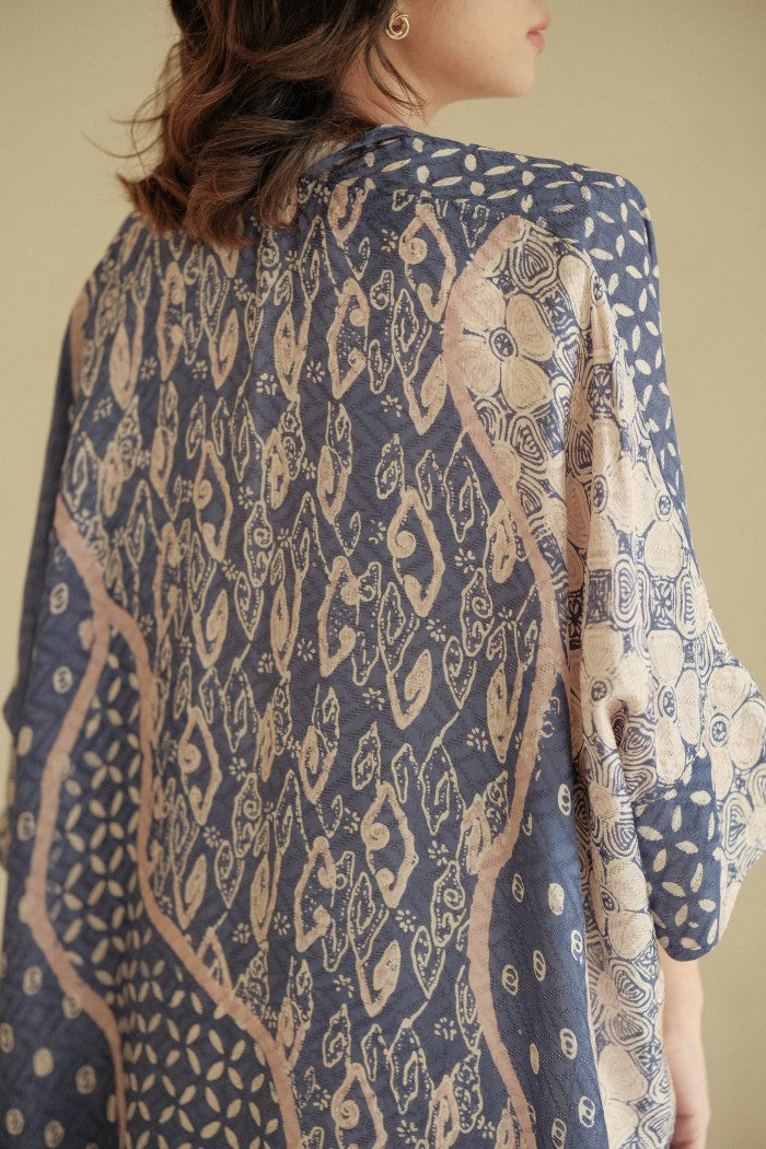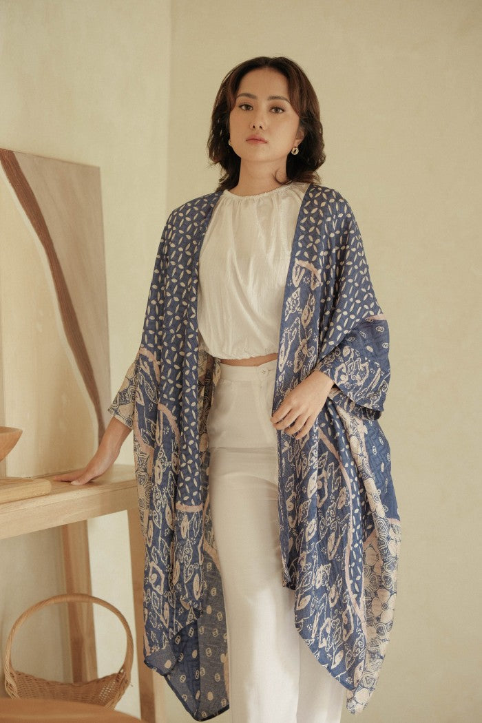Embrace timeless sophistication with this flowy and versatile Batik outerwear, thoughtfully designed to complement all body types. Crafted from lightweight and breathable viscose, this piece drapes beautifully, ensuring both comfort and effortless style.