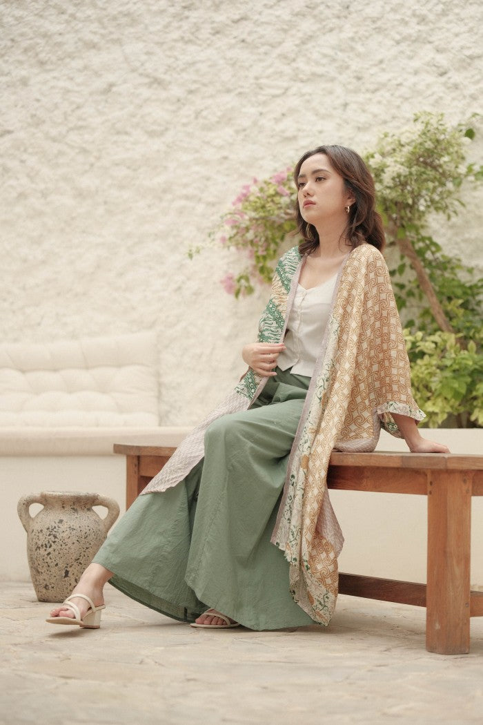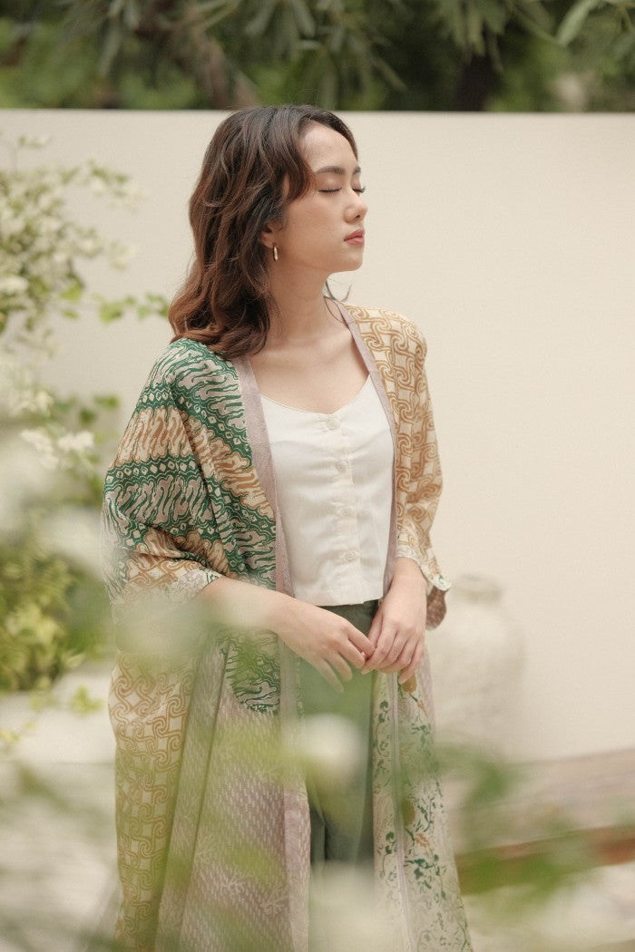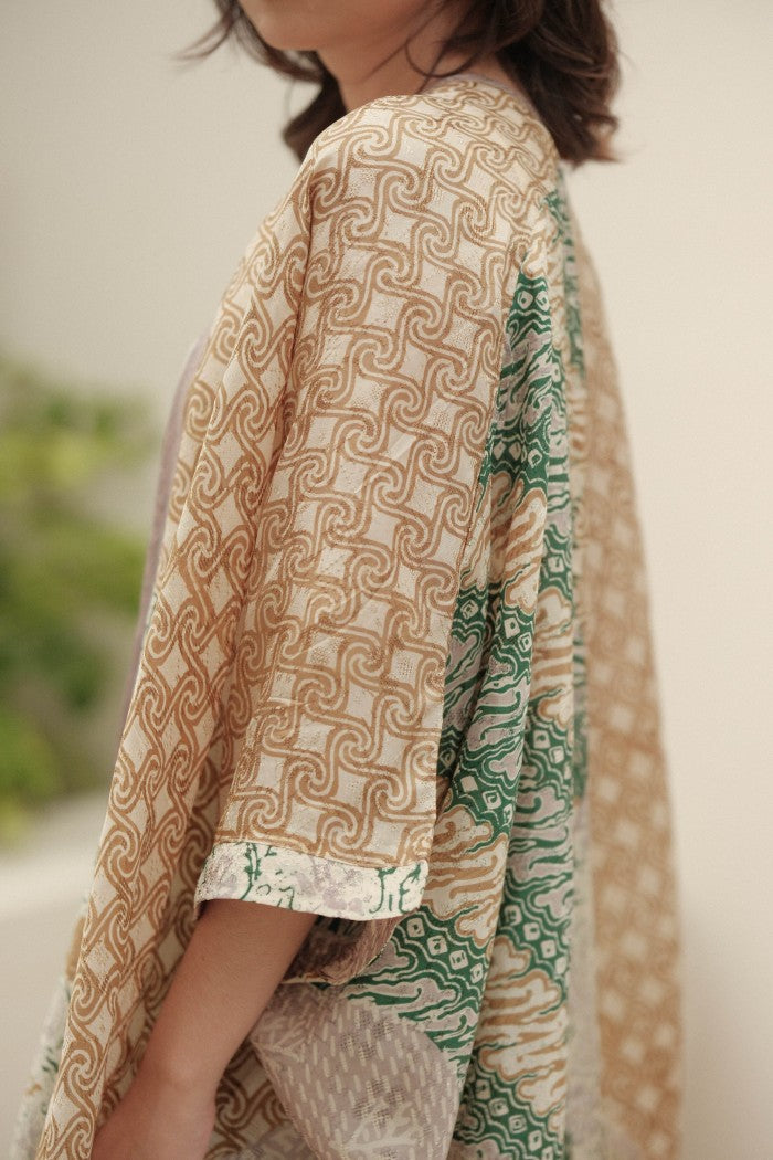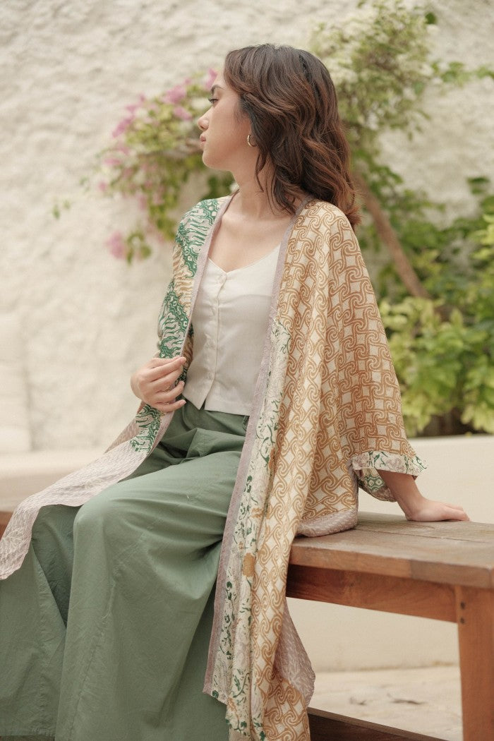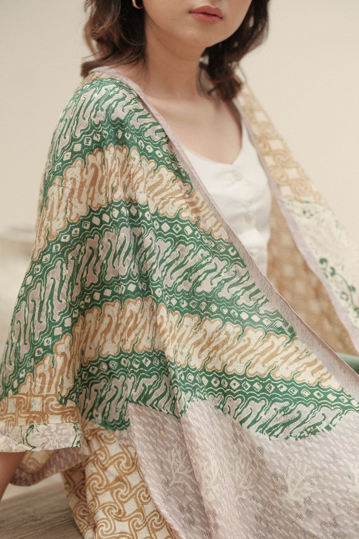 Embrace timeless sophistication with this flowy and versatile Batik outerwear, thoughtfully designed to complement all body types. Crafted from lightweight and breathable viscose, this piece drapes beautifully, ensuring both comfort and effortless style.
