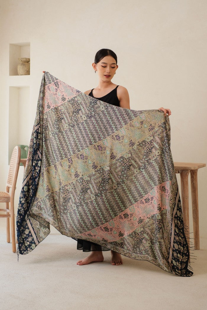 Rimba Jawi in Blue Pink - Selendang Sutra Batik Tulis