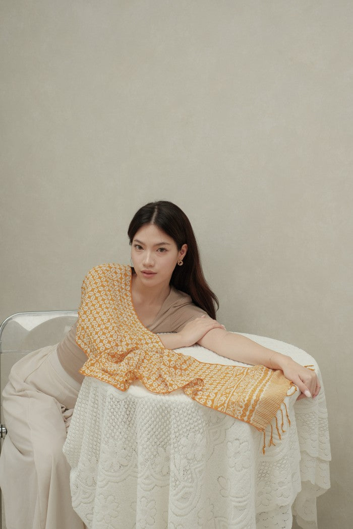 Embrace the rich cultural heritage of Batik with our exquisite cotton scarf, meticulously crafted using the traditional stamping technique. This accessory showcases intricate patterns, symbolizing the beauty and artistry of the Batik process.