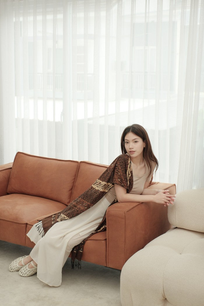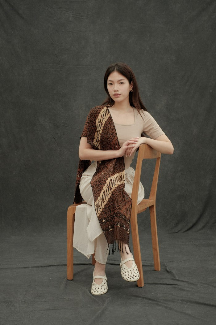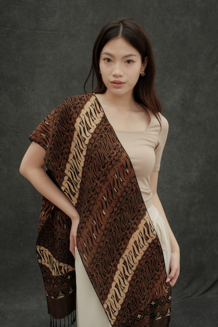 Embrace the rich cultural heritage of Batik with our exquisite cotton scarf, meticulously crafted using the traditional stamping technique. This accessory showcases intricate patterns, symbolizing the beauty and artistry of the Batik process.