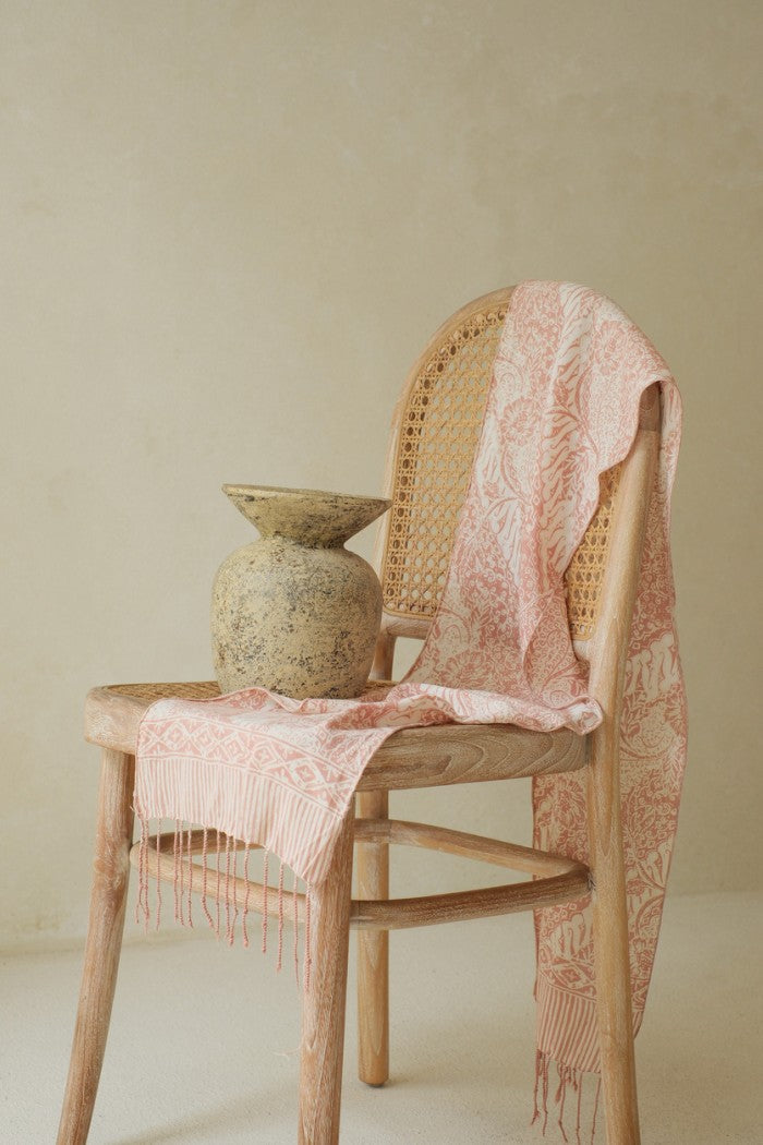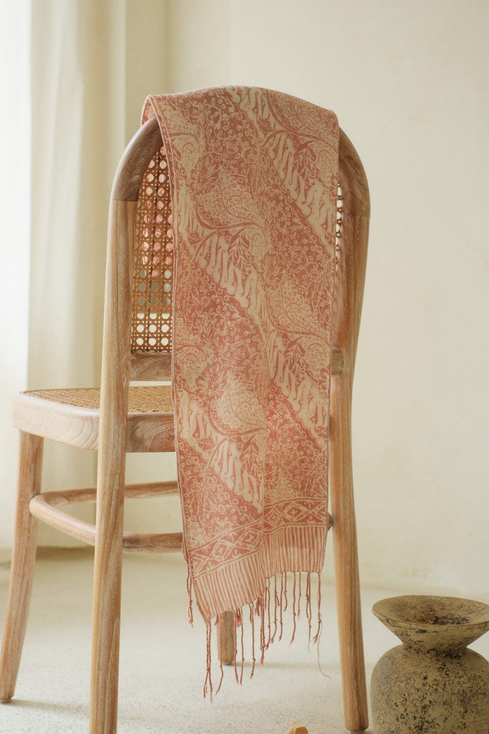 Emphasizing both style and sustainability, this Batik-stamped scarf effortlessly elevates your outfit. Whether draped casually over your shoulders or wrapped snugly around your neck, it's the perfect addition to any outfit, showcasing your appreciation for time-honored artisanship and timeless elegance.