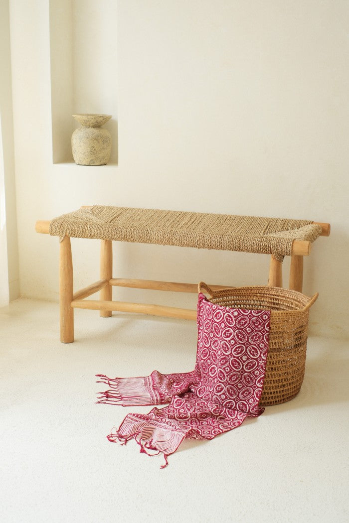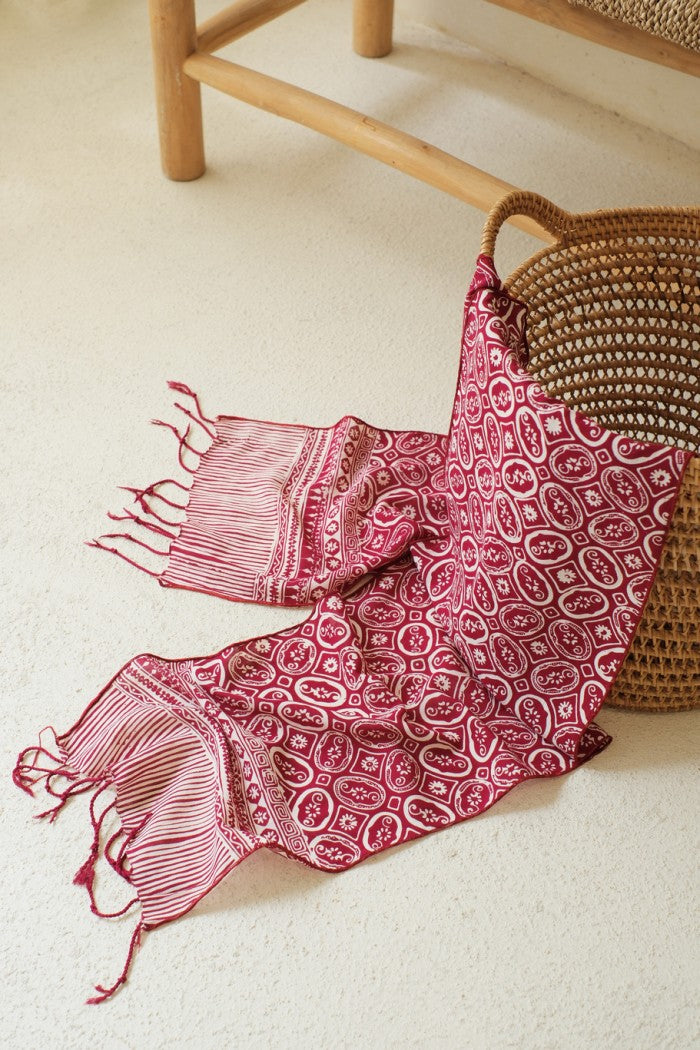 Emphasizing both style and sustainability, this Batik-stamped scarf effortlessly elevates your outfit. Whether draped casually over your shoulders or wrapped snugly around your neck, it's the perfect addition to any outfit, showcasing your appreciation for time-honored artisanship and timeless elegance.