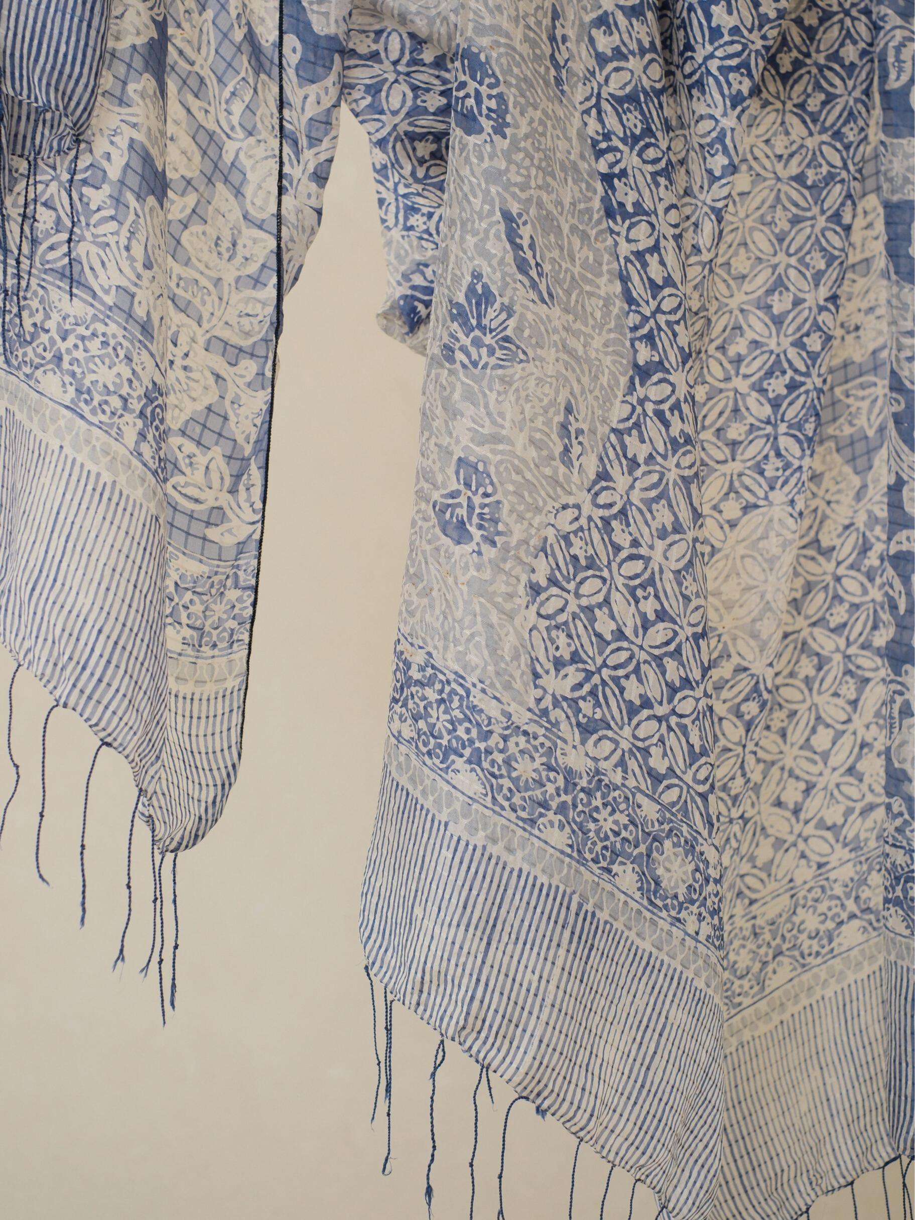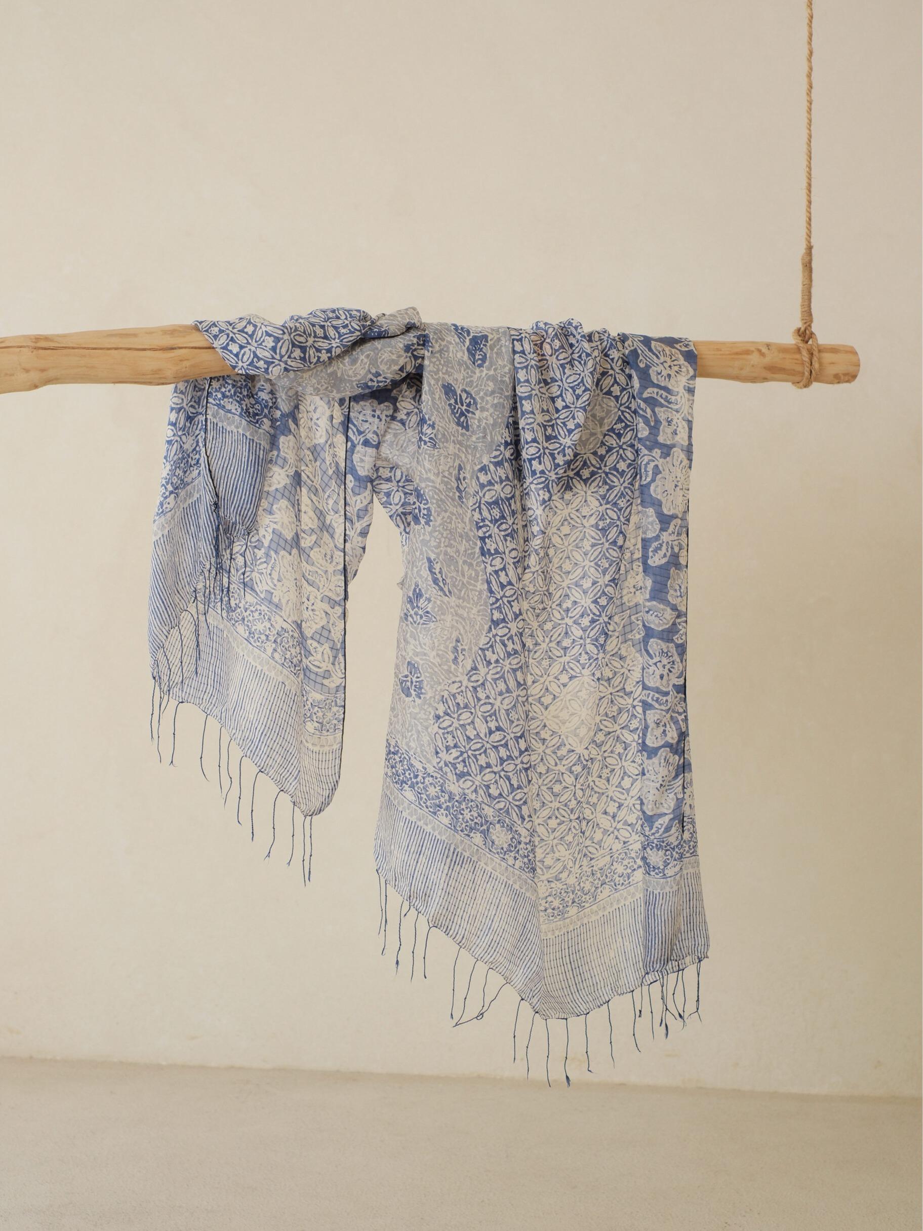 Batik Ratu - Selendang Sutra Batik - Kawung Daun - Blue White