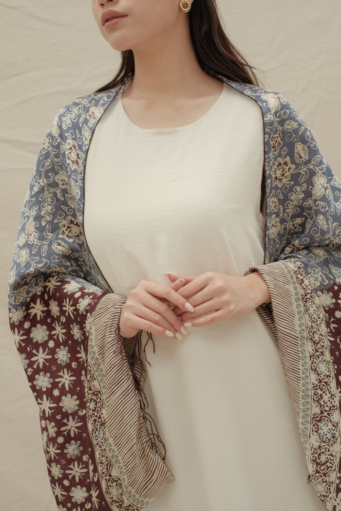 Selendang ini merupakan buah kolaborasi antara seni tradisional Batik Cap dengan kualitas bahan berkualitas tinggi. Setiap helai Batik dibuat dengan penuh perhatian dan menggunakan metode tradisional, memastikan hasil yang indah dan awet.