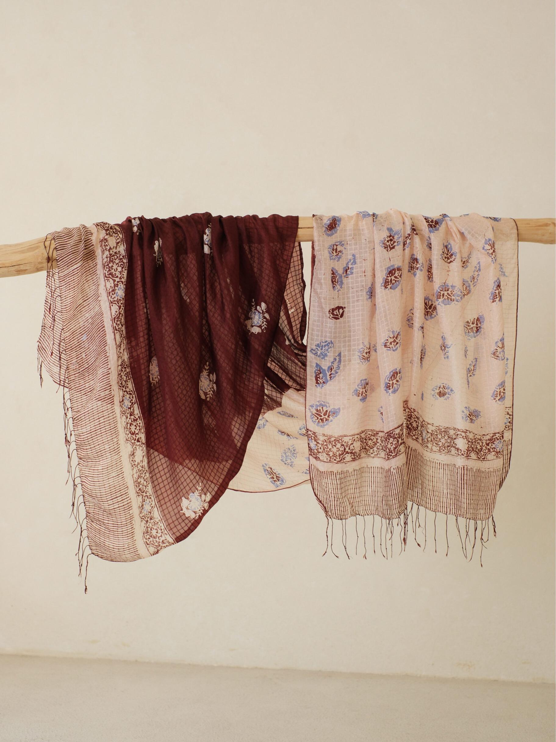 Selendang Sutra Batik - Selaras Brown Pink 2