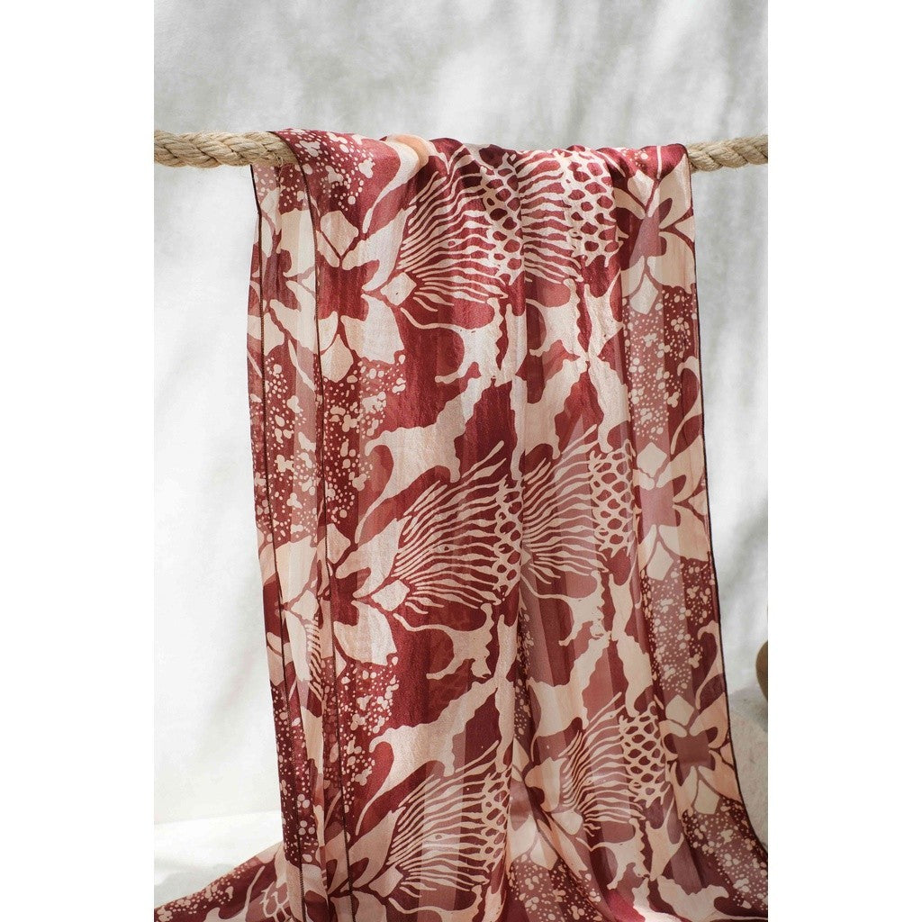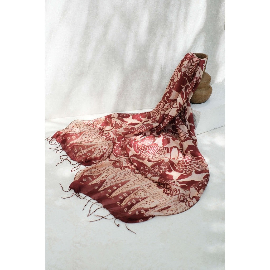 Syal Batik Sutra Bunga Pelikan - Maroon - 45