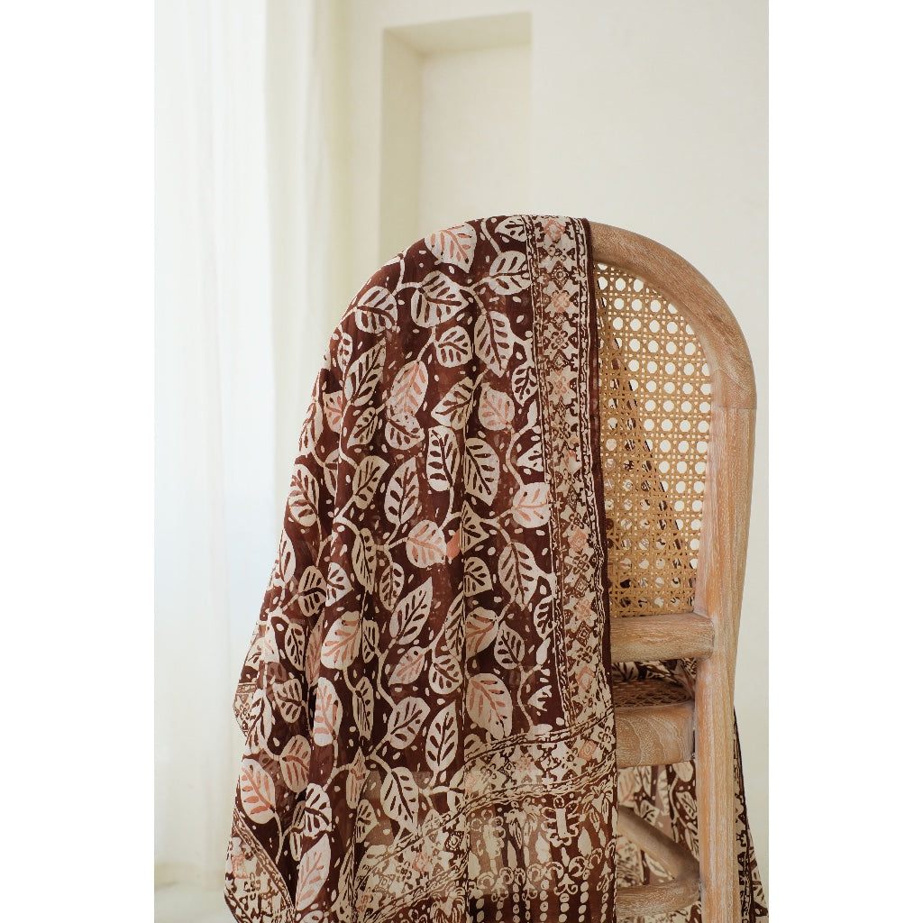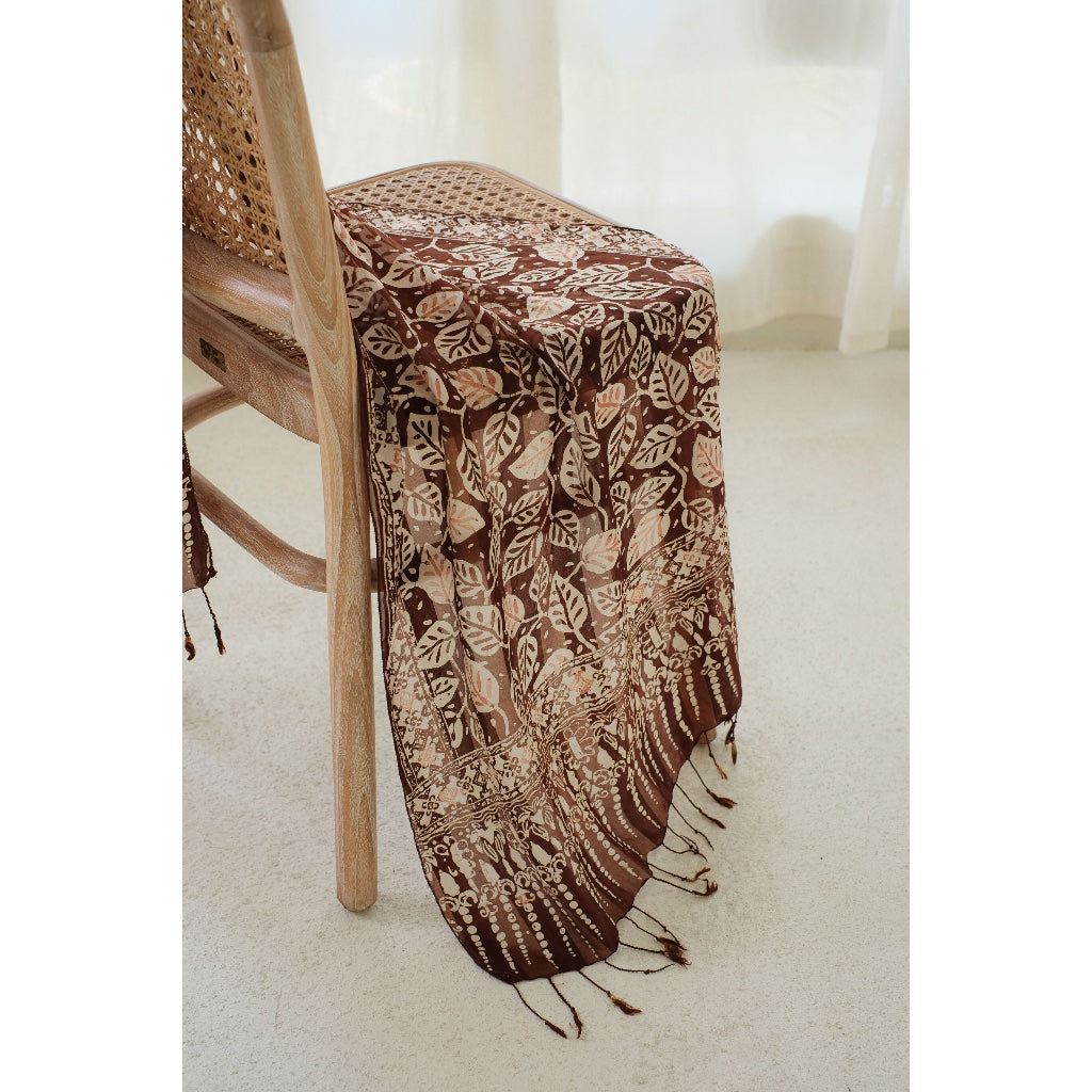 Syal Batik Sutra Calathea in Brown - 55