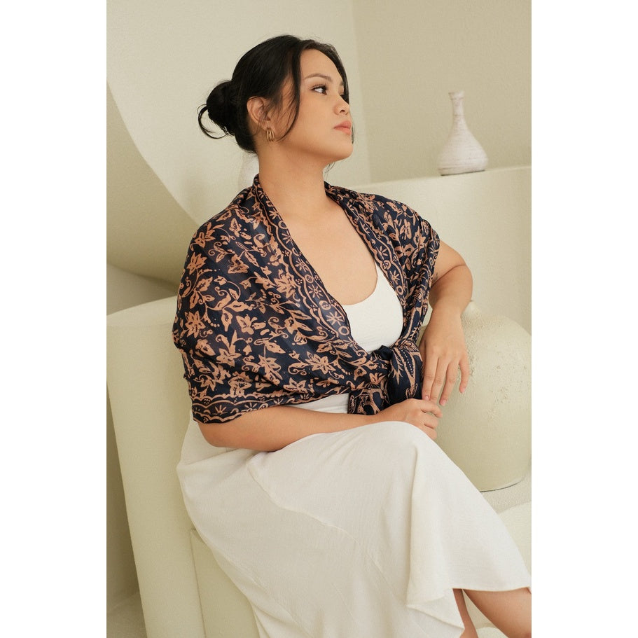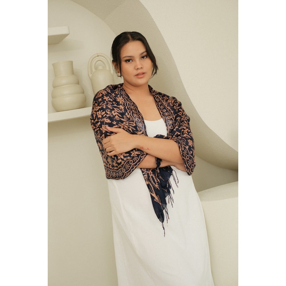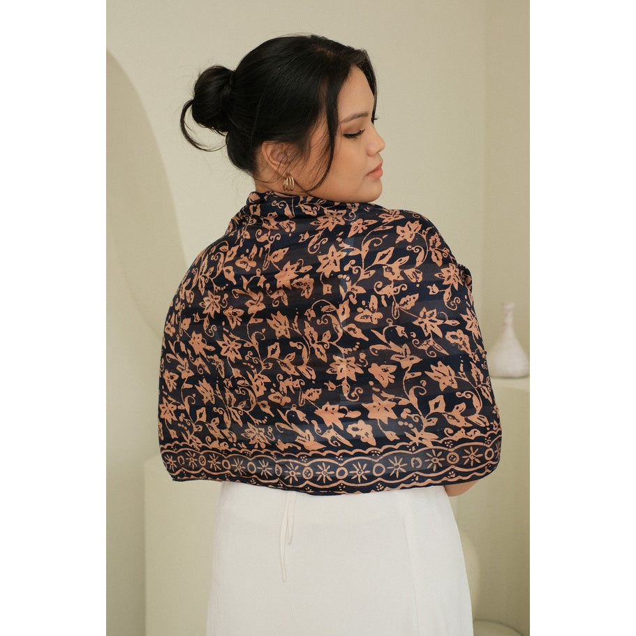 Syal Batik Sutra Daun Bintang - Dark Blue