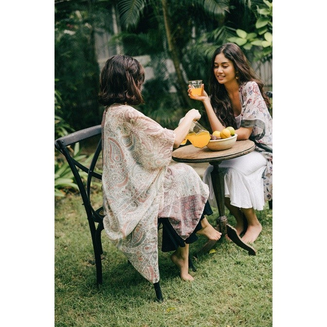 Method: Modern printing Slip this outer over your outfit as you stroll from beach walk to boardwalk. Ready to lounge by the ocean and sip mango smoothies. Throw on any shades as you watch the waves come and go.